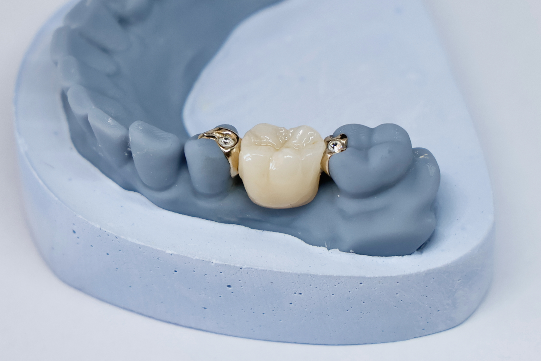 Pontique en or, couronne en Zircone.